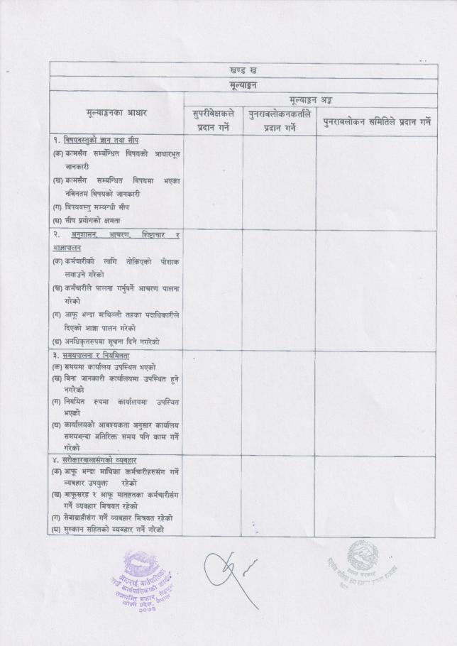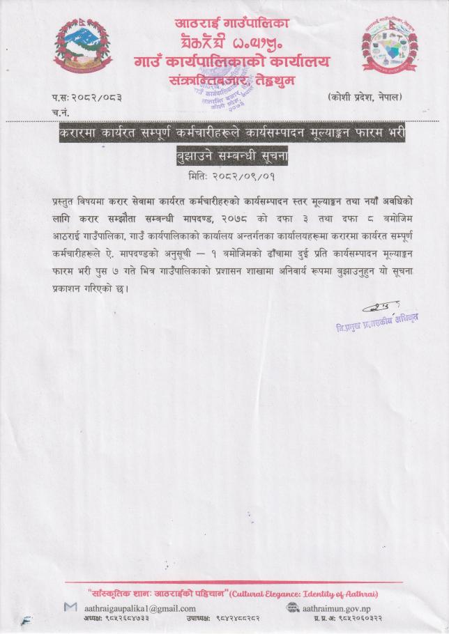 » करारमा कार्यरत सम्पूर्ण कर्मचारीहरूले कार्यसम्पादन मूल्याङ्कन फारम भरी बुझाउने सम्बन्धी सूचना