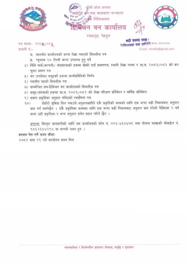 डिभिजन वन कार्यालय, तेह्रथुमको प्रस्ताव पेश गर्ने सम्बन्धी सूचना