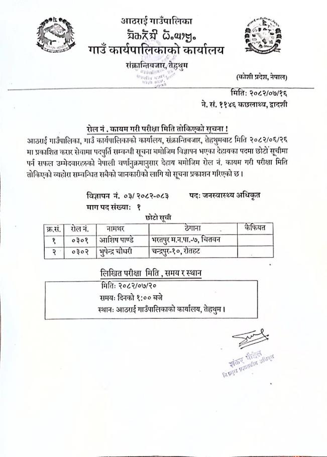 जनस्वास्थ्य अधिकृत पदको परीक्षा मिति तोकिएको सूचना