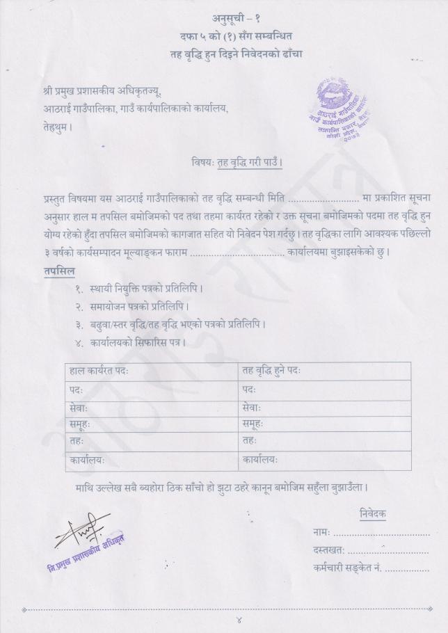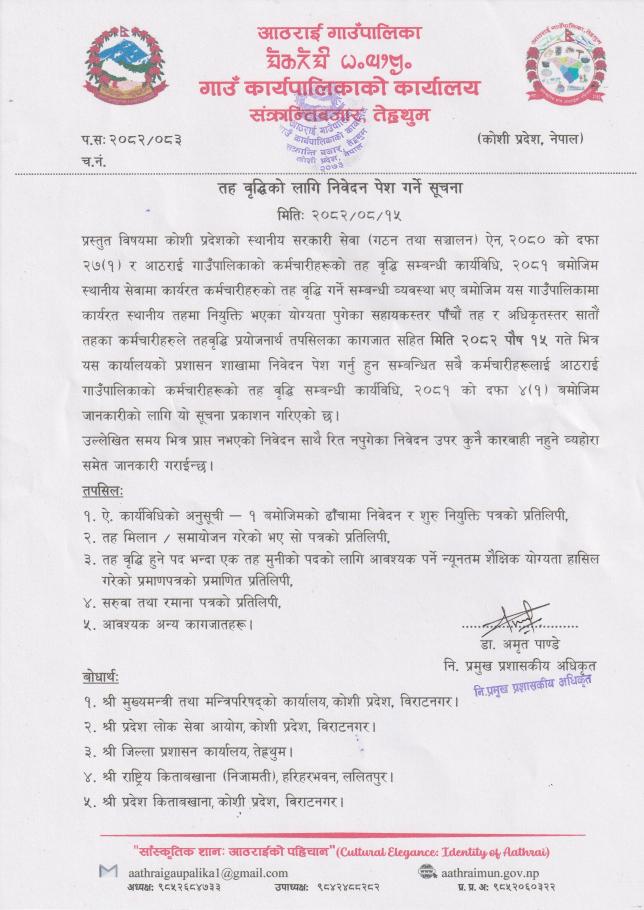 तह वृद्धिको लागि निवेदन पेश गर्ने सूचना