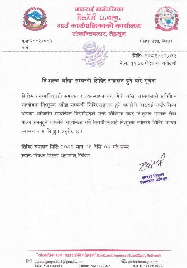 » निःशुल्क आँखा सम्बन्धी शिविर सञ्चालन हुने बारे सूचना